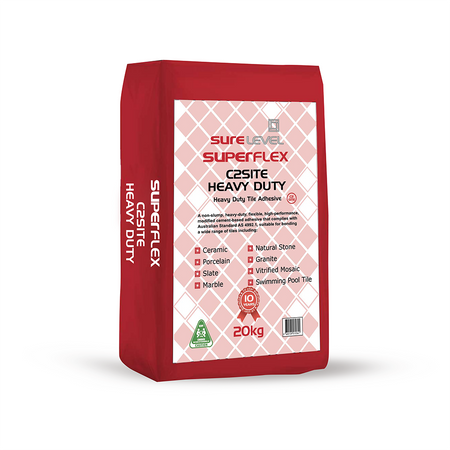 SuperFlex C2S1TE Heavy Duty Tile Adhesive is a high-performance, flexible powder adhesive that only requires the addition of water to meet the requirements of Australian Standard AS 4992.1 (ISO 13007-1:2004).